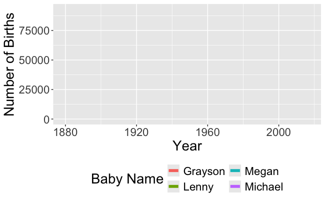 babynamessummarize(): Compute an aggregation measure (e.g., mean, standard deviation).
