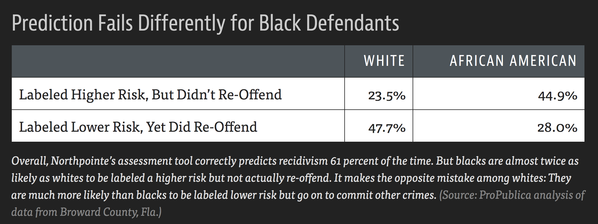 Example: COMPAS model used throughout the country to predict recidivism